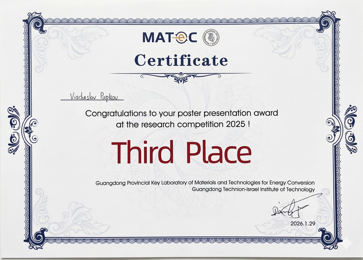 Poster Award to Viacheslav Papkov